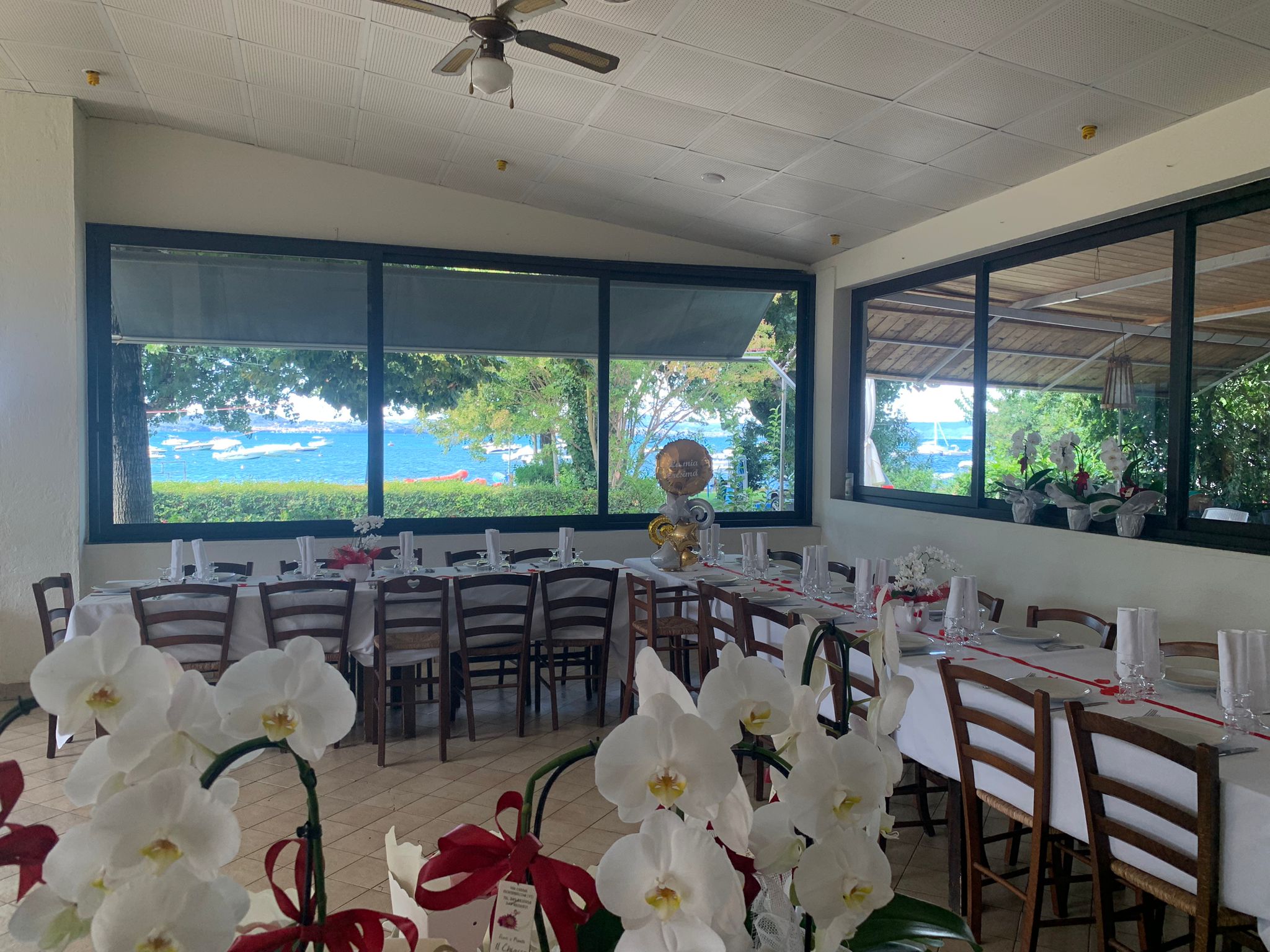 Il Ristorante Da Corrado a Montefiascone offre una splendida vista sul lago ed è proprio questa particolarità, unita alla bontà e alla ricercatezza della sua cucina, a renderlo la location perfetta per ricevimenti e banchetti. Durante i mesi estivi, inoltre, il Ristorante e Pizzeria Da Corrado apre lo spazio esterno per offrire indimenticabili cene sotto le stelle.